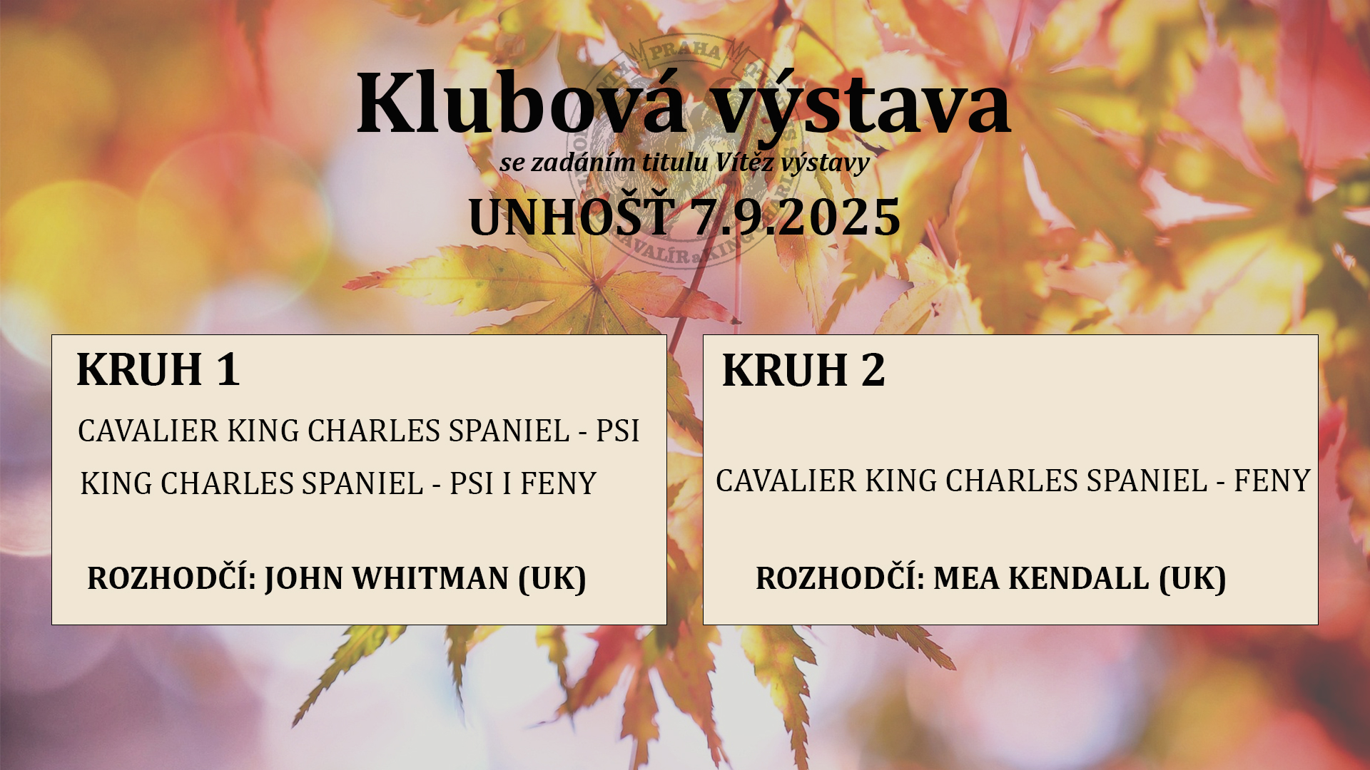 níže naleznete rozdělení kruhů na naše výstavy v Unhošti konané ve dnech 6.-7.9.2025.